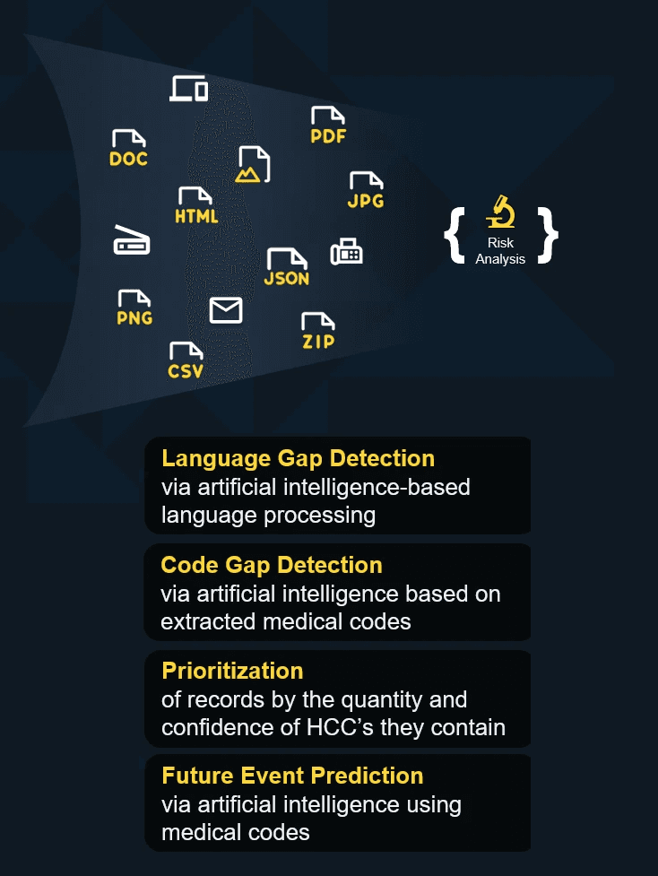 Our risk adjustment NLP solution allows our customers to streamline the identification of HCC risk adjustment categories from any medical record format, across all structured and unstructured data. Agnostic to any risk adjustment model version, we deliver 20x faster insights versus a manual review, with 99% HCC detection confidence, ensuring we deliver accurate and compliant results.